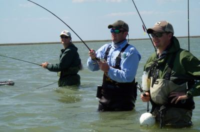 We never saw him, but what excitement there was for Travis feeling such a strong fish! I add this little story to tell you of one of the most exciting aspects of saltwater fishing. The potential is always there to hook up with something really powerful, that you might not even see, but you'll feel on the end of your line – an unforgettable feeling! The picture you see is me waiting there with my Boga Grip ready to wade toward the monster and try to help Travis to land him.